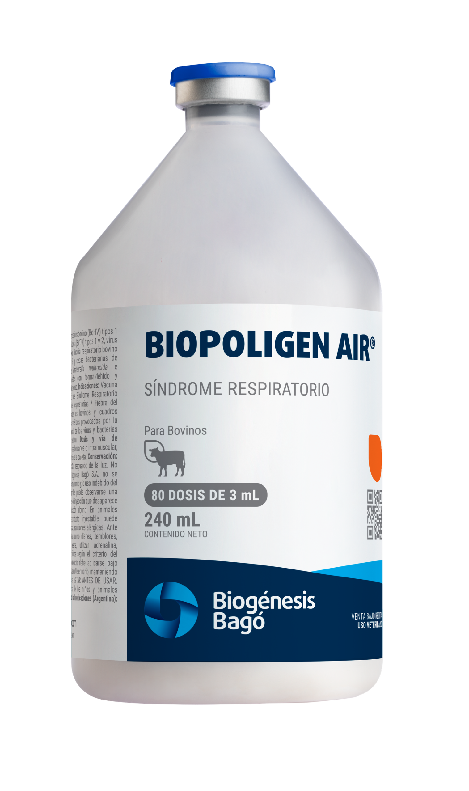 Vacuna para la prevención del síndrome respiratorio de los bovinos (complejo de enfermedades respiratorias, fiebre del transporte, neumonía) y cuadros reproductivos, nerviosos y entéricos provocados por la acción individual o combinada de los virus y bacterias presentes en la composición.