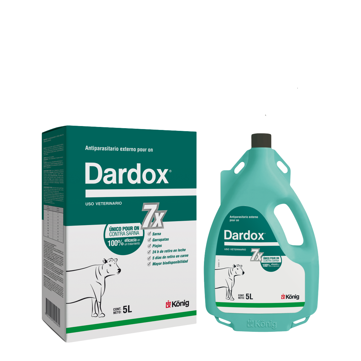 Dardox es el primer pour on sarnicida, garrapaticida y piojicida del mercado. Posee 7 características como producto para el control de parásitos externos: su efecto garrapaticida, sarnicida, piojicida, su bajo tiempo de retiro de 5 días en carne y 24 hs en leche, y su alta biodisponibilidad lo convierten en un producto de primera elección