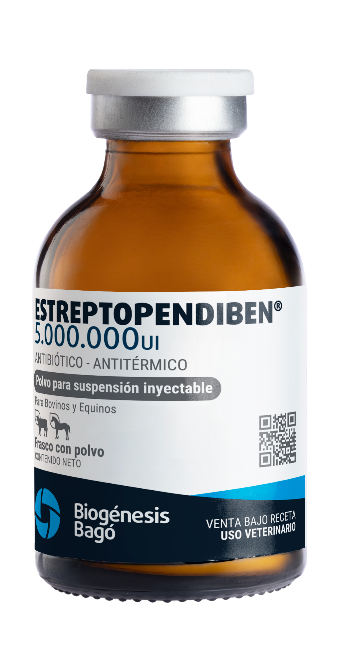 Antibiótico inyectable de amplio espectro y antitérmico para bovinos y equinos. Asociación sinérgica bifásica de penicilina y estreptomicina con dipirona y vitamina C.