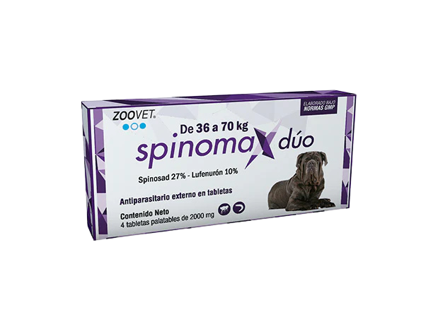 Pulguicida. Combina la rápida acción adulticida del Spinosad con la actividad del Lufenurón sobre el ciclo ambiental de la pulga.